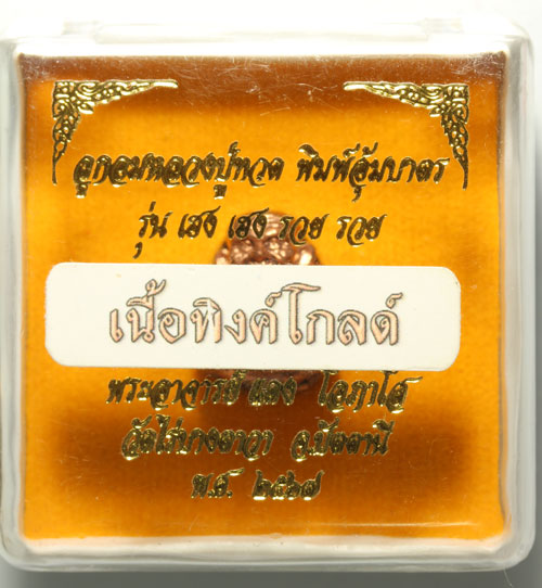 ลูกอมหลวงปู่ทวดอุ้มบาตร จารมือพระอาจารย์แดง รุ่นเฮงๆรวยๆของพระอาจารย์แดงวัดไร่บางตะวาจังหวัดปัตตานี เนื้อ พิ้งโกลด์ ฝังตะกรุดเงินแท้ 1 ดอก สวย พิธีดี เข้มขลัง กล่องเดิม |