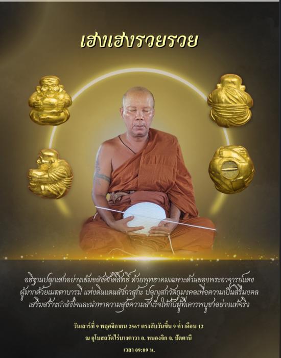 ลูกอมหลวงปู่ทวดอุ้มบาตร จารมือพระอาจารย์แดง ปลุกเสกวันที่ 9 พฤศจิกายน 2567 ตรงกับวันขึ้น 9 ค่ำเดือน 12 ปีมะโรง รุ่นเฮงๆรวยๆของพระอาจารย์แดงวัดไร่บางตะวาจังหวัดปัตตานี เนื้อ พิ้งโกลด์ ฝังตะกรุดเงินแท้ 1 ดอก สวย พิธีดี เข้มขลัง กล่องเดิม