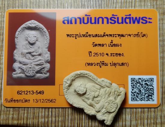 พระรูปเหมือนสมเด็จพระพุฒาจารย์(โต) วัดพลา เนื้อผง ปี 2510 จ.ระยอง. (หลวงปู่ทิม ปลุกเสก) |
