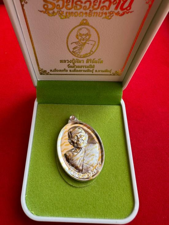 หลวงปู่มหาศิลา สิริจันโท รุ่นรวยรวยล้าน ปี2568 เนื้อเงินพรายทอง หลังหนุมาน ผิวสวย จมูกโด่ง หมายเลข 358 กล่องเดิม(ราคาจอง 2,999)