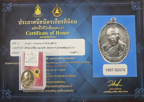 เหรียญห่วงเชื่อม รุ่นมงคลศิลาฤกษ์ หลวงปู่ทิม วัดละหารไร่ เนื้อกะไหล่เงิน ปี2537 ติดรางวัลที่2 |