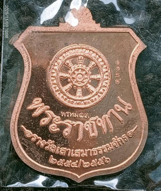 เหรียญพรหมพระราชทาน หลวงพ่อชำนาญ วัดบางกุฎีทอง จ.ปทุมธานี เหรียญแจกทาน เนื้อทองแดงพ่นทราย ปี 2556 หมายเลข 1132 |
