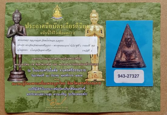 พระนางพญา หลวงพ่อจง วัดหน้าต่างนอก จ พระนครศรีอยุธยา +ใบประกาศเกียรติบัตร ตามรูป