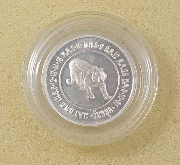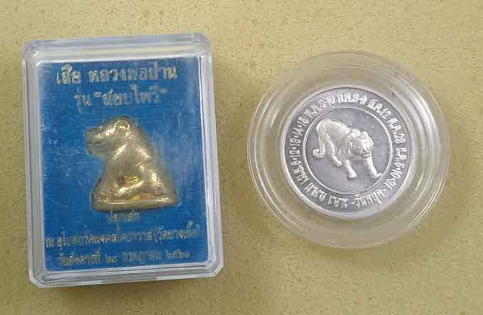 เสือหลวงพ่อปาน วัดบางเหี้ย รุ่นสยบไพรี พิมพ์หุบปาก กล่องเดิม + เหรียญกษาปณ์ขัดเงา ที่ระลึกวันหยุดประจำปีขาล 2541 |