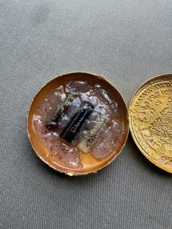 เคาะเดียวไวไว ตลับสีผึ้งพระราหู มหานิยมอุดมโชค จตุคามรามเทพ รุ่น มงคลจักรวาล ปี2549 พิมพ์ใหญ่ ขนาด5.5ซม ลงยาดำ ลงเบญจรงค์น้ำทอง สีผึ้งด้านในเดิมๆ |