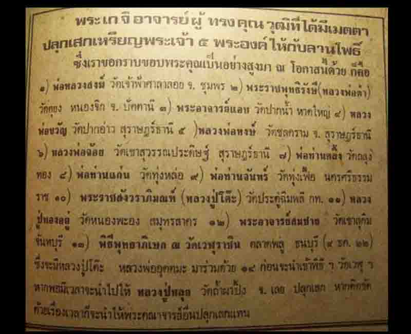 อ้างอิง​ : ข้อมูลจากนิตยสาร​พระเครื่อง​ลาน​โพธิ์​ ฉบับ ปี 2522