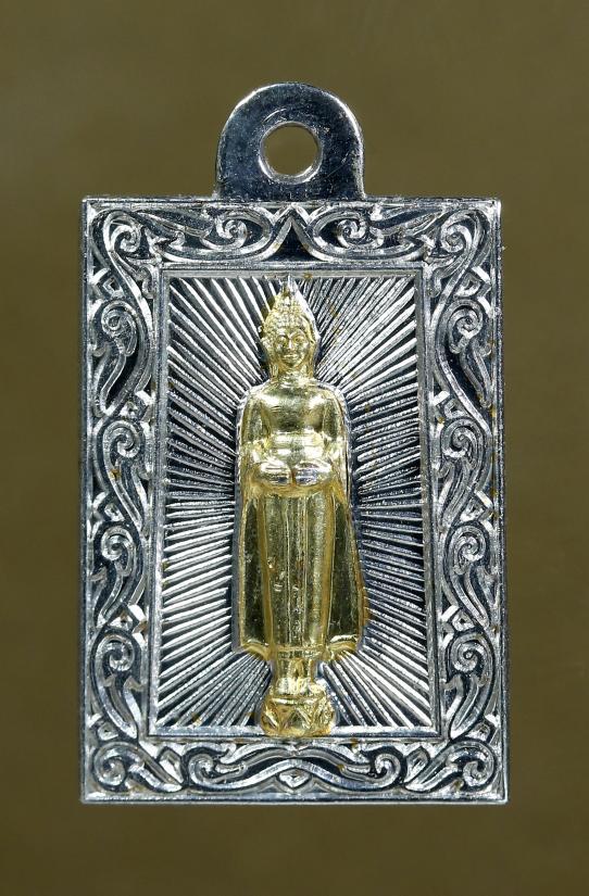 เหรียญแสตมป์ หลวงพ่อบ้านแหลม วัดเพชรสมุทร เนื้อเงินชุบทองคำขาว หน้ากากทอง |