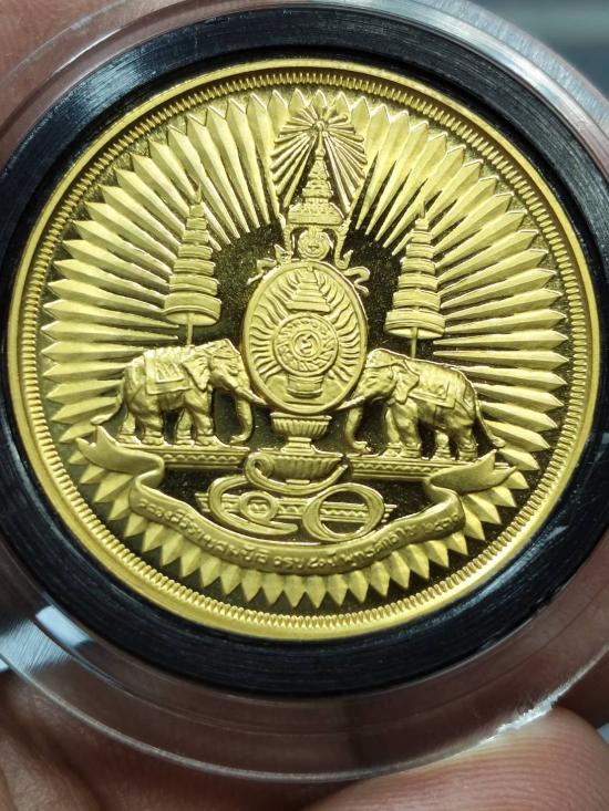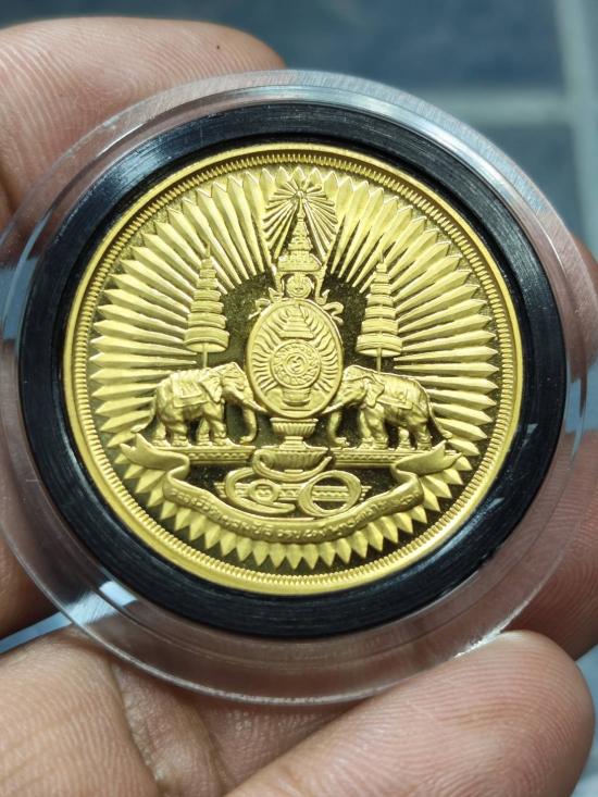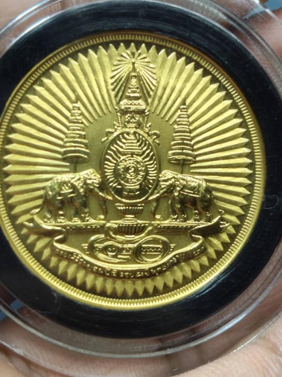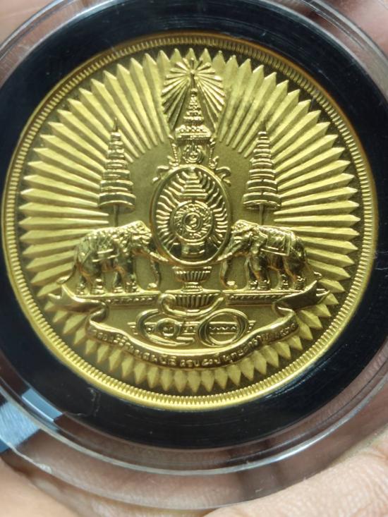 เหรียญตราสะญลักษณ์ กาญจนาภิเษกสองหน้า เนื้อทองชุบ พ.ศ.2539 ขนาด 3 ซ.ม. สภาพสวยครับ |