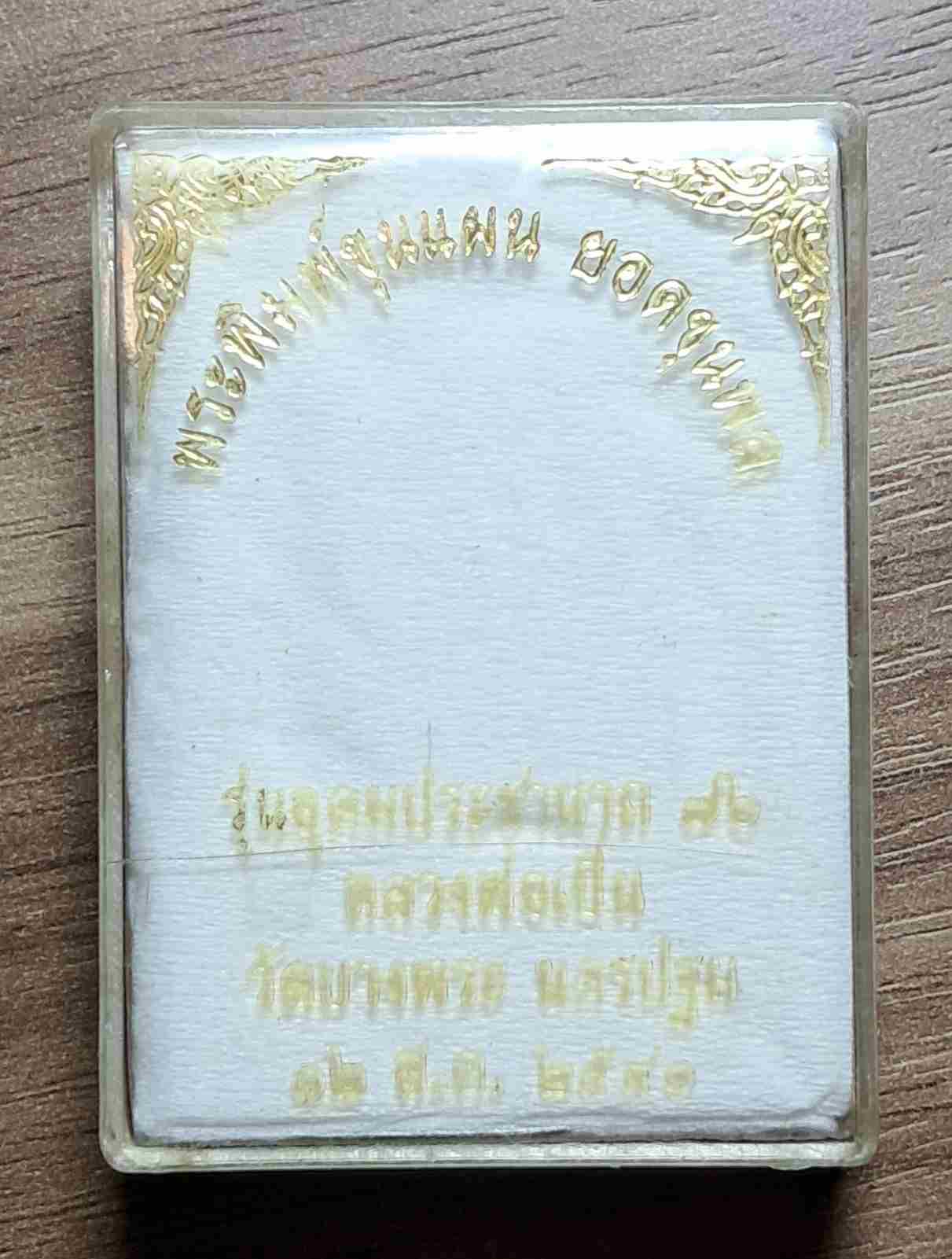 พระยอดขุนพลหลวงพ่อเปิ่น วัดบางพระ ด้านหน้าติดเกศาหลวงพ่อพระสวยกล่องเดิมๆ |