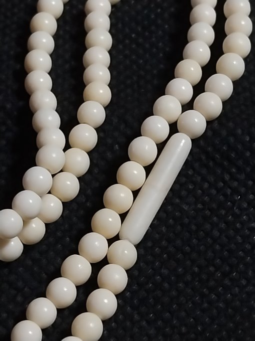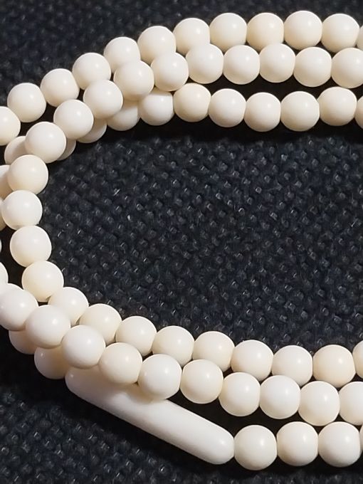 เคาะเดียว สร้อยงาช้าง เม็ดเล็ก ขนาด 4 มิล ความยาว 18 นิ้ว ของเก็บเก่า คล้องไว้เป็นเครื่องรางชั้นดีได้เลยครับ |