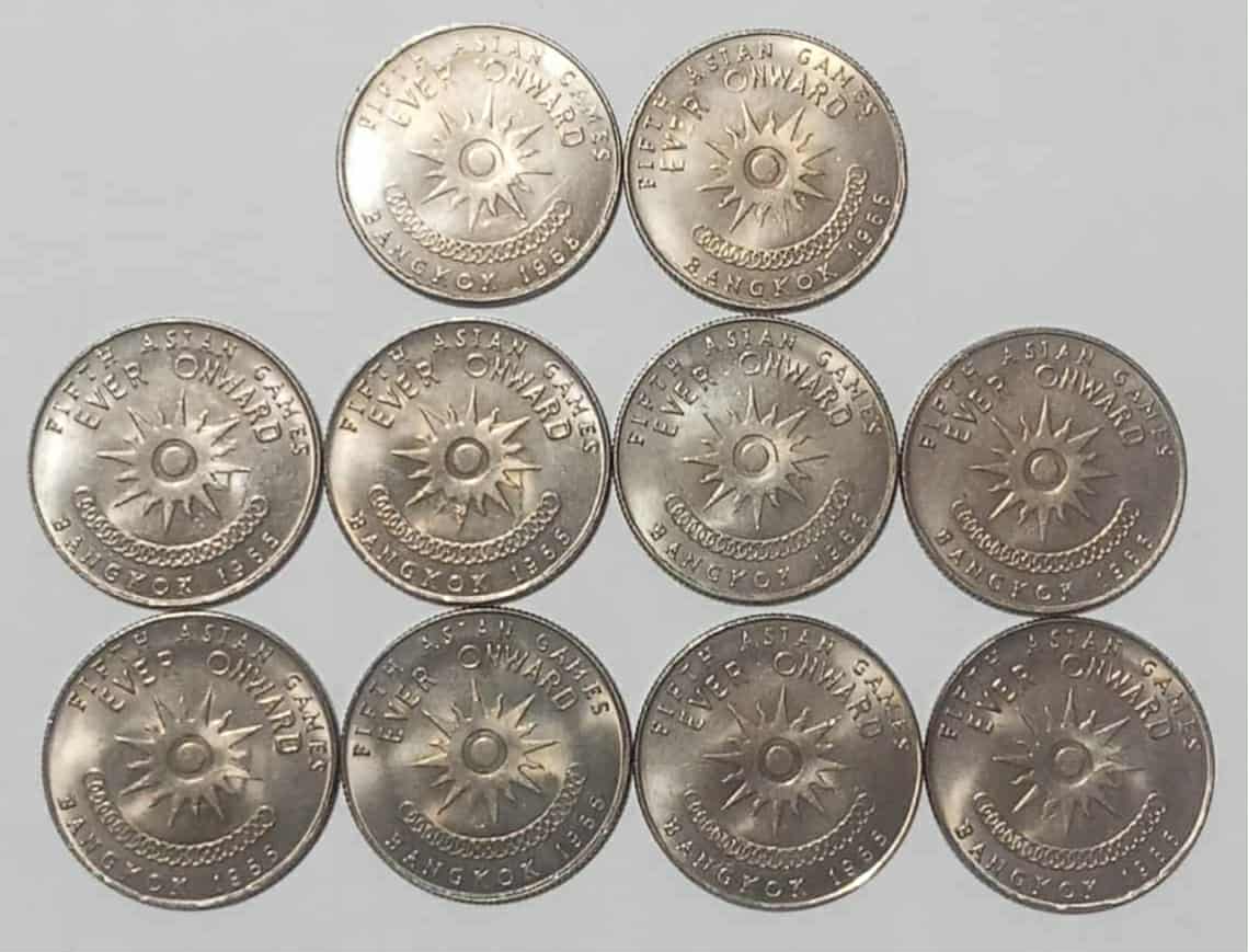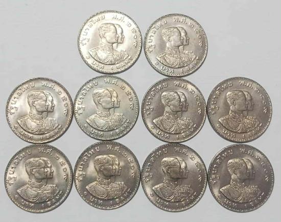 เหรียญ 1 บาท เอเชี่ยนเกมส์ ครั้งที่ 5 ในหลวงคู่ราชินี พ.ศ.2509 ในสมัยรัชกาลที่ 9 สภาพไม่ผ่านใช้งานผิวแกะถุง จำนวน 10 เหรียญ ครับ |