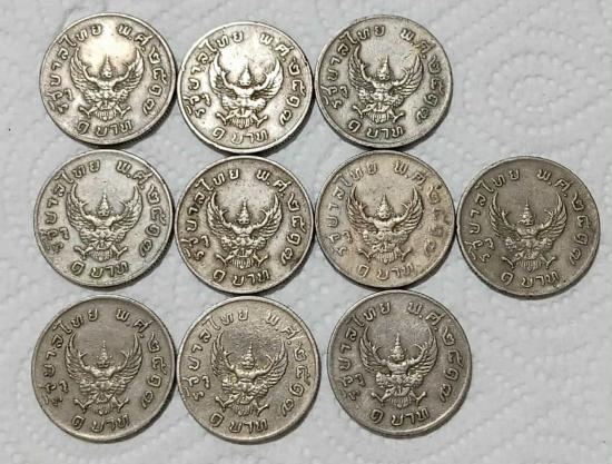 เหรียญ 1 บาท หลังครุฑ พ.ศ.2517 ในสมัยรัชกาลที่ 9 พกติดตัวไว้เป็นมงคล เหรียญสภาพผ่านการใช้งาน ผิวเดิม จำนวน 10 เหรียญ ครับ