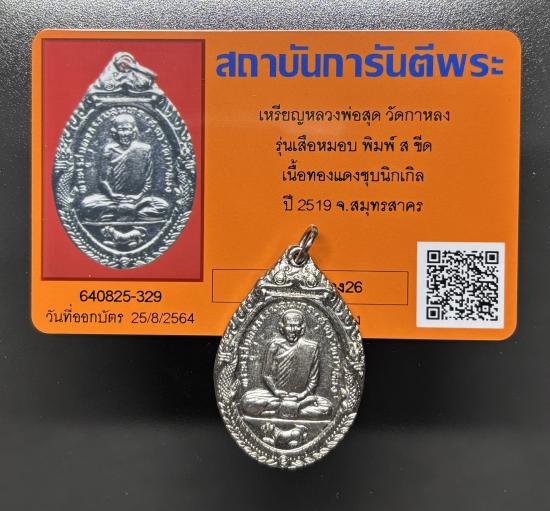 เหรียญหลวงพ่อสุด วัดกาหลง รุ่นเสือหมอบ เนื้อทองแดงชุบนิกเกิล ปี 2519 ผิวเดิม หายาก พร้อมบัตรรับรองครับ