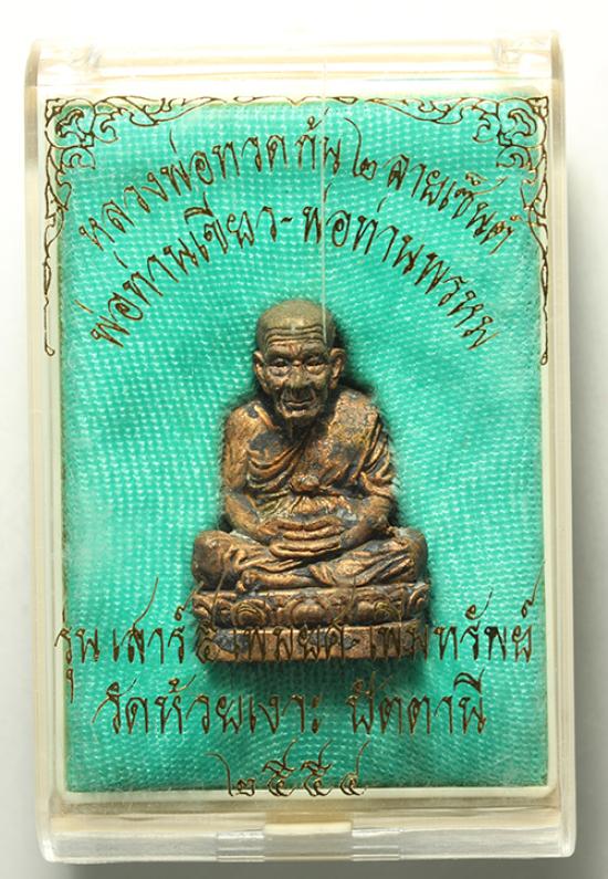 รูปหล่อหลวงพ่อทวด ก้น 2 ลายเซ็นต์ เนื้อเหลือ รุ่นเสาร์ 5 เพิ่มยศ เพิ่มทรัพย์ พ่อท่านเขียว จัดสร้างปี 2554 พระชุดนี้เป็นแบบหล่อโบราณสวยมากๆ ใต้ฐานอุดผง มีโค้ด 2 ลายเซ็นต์ ฐานกว้าง 1.8 ซม.และสูง 2.8 ซม.ครับ