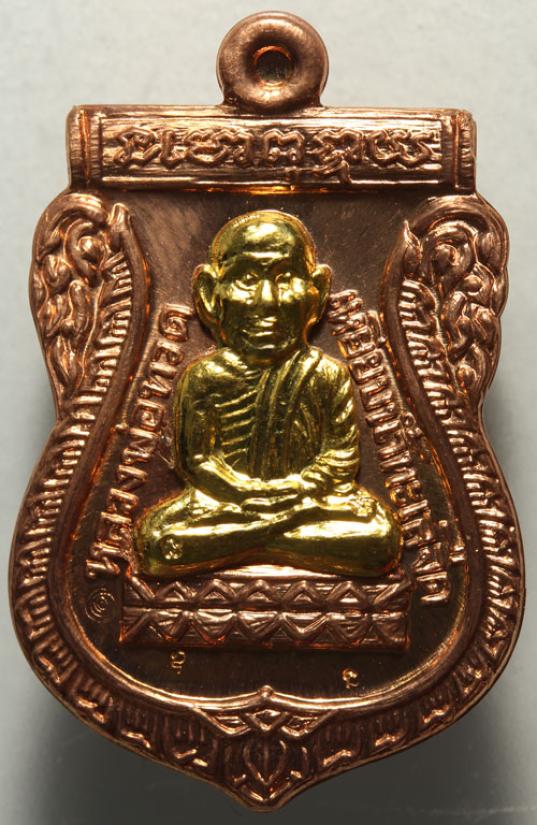 เหรียญเสมาจักรพรรดิหลวงพ่อทวด พิมพ์หน้าหัวโต หลังเลื่อน หรือ ยิ่งโตก็ยิ่งเลื่อนอีก หลวงพ่อทอง เนื้อ ทองแดงหน้ากากทองทิพย์ มีรันนิ่งเลข รุ่นทอง 93 หลวงพ่อทอง วัดสำเภาเชย จ.ปัตตานี ปี 2552 |