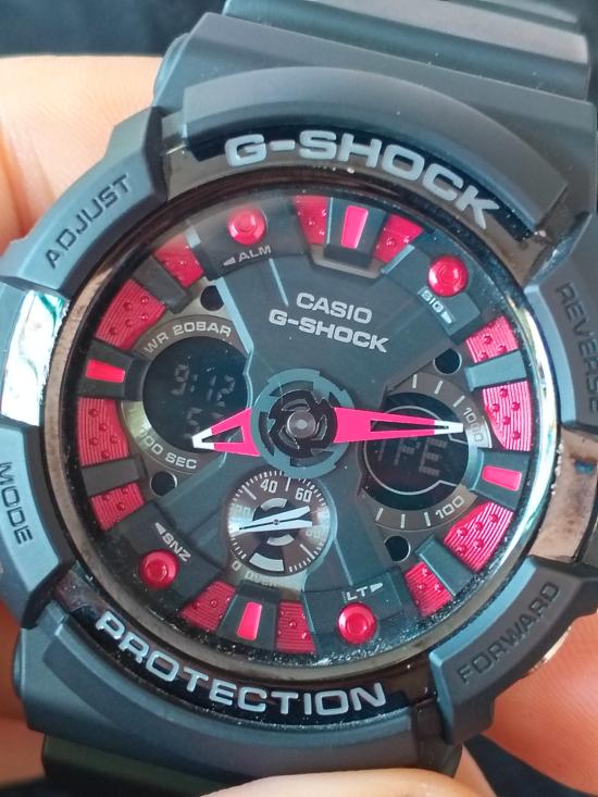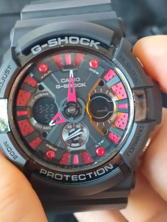 @เคาะเดียว$*Casio G-Shock GA-200-1A มือสอง สภาพสวย จอดำหน้าปัดแดง สายดำเปลี่ยนสายมาใหม่ ไม่มีกล่อง |