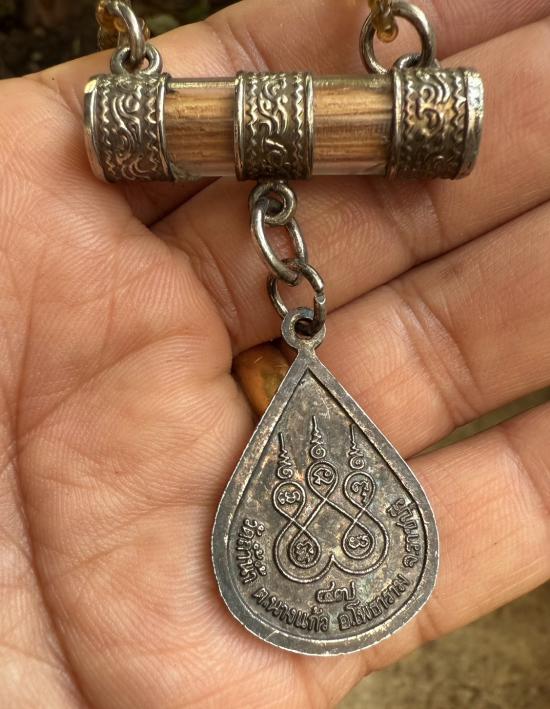 เหรียญหลวงพ่อเงิน วัดถ้ำน้ำ ราชบุรี เนื้อกะไหล่เงิน พร้อมว่านหุ้มด้วยเงิน พร้อมสร้อยลูกปัดสวยงาม