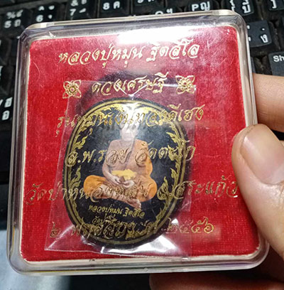 699....... วัดใจ........... ล็อกเก็ตฉากดำ ลายกนกทอง หลวงปู่หมุน รุ่นหมุนเงินทองดีเฮง ปี 2556........ เลข 258 สวยๆกล่องเดิม |