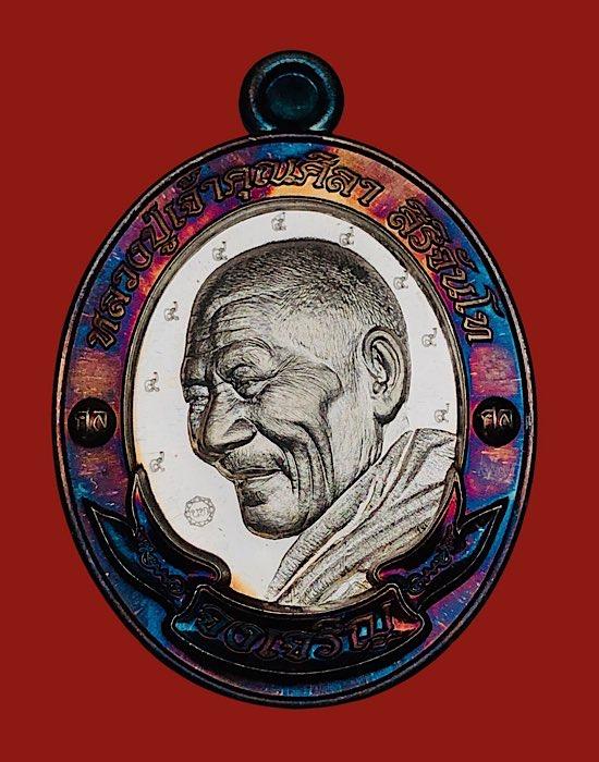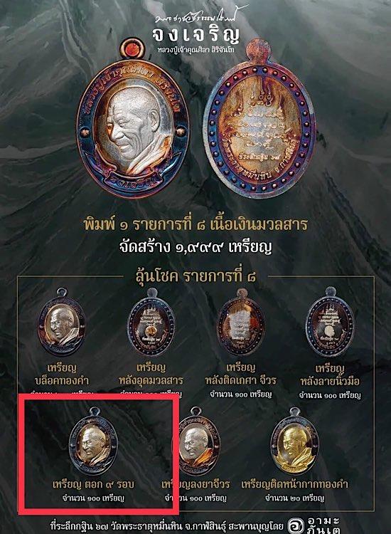 หลวงปู่มหาศิลา จงเจริญ เนื้อเงินมวลสาร รายการพิเศษ ตอก9 รอบ 1 ใน100 เหรียญ ผิวสวยๆจมูก100 เลข1853กล่องเดิม พระสวยแชมป์ๆ