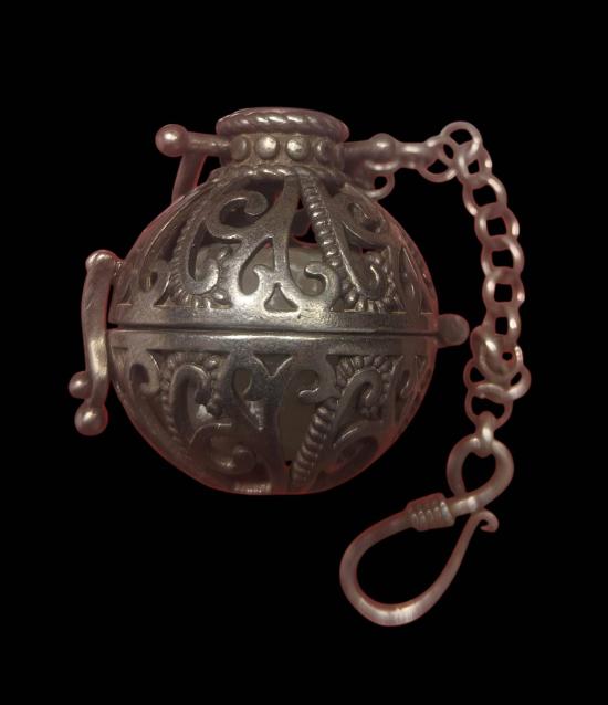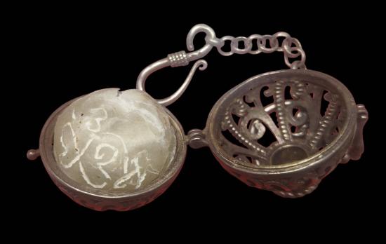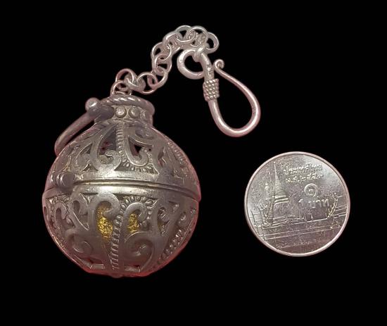 ลุกอมเทียนชัย บรรจุใน กระเช้าเงินแท้ ฉลุลาย สวยงาม ตะขอเงินสร้อยเงินแท้