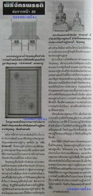 => ข้อมูลเพิ่มเติม วัตถุมงคล พิธี จักรพรรดิ์ ๙ ยอด ได้มีข้อมูลลงให้เห็นทั้งในนิตยสารพระเครื่อง ( ข้อมูลด้านล่าง ) และหนังสือ หลวงปู่คำบุ คุตฺตจิตโต ( บูชาได้จากที่วัด ) อีกด้วย ... และที่สำคัญ ( ขอย้ำอีกทีว่า ) ผงพุทธคุณที่อุดใต้ฐานองค์พระ หลวงปู่รวบรวมและลบผงเอง ซึ่งในพระเครื่องยุคหลัง ๆ หาผงพุทธคุณแท้ ๆ แบบนี้ไม่มีแน่นอน |