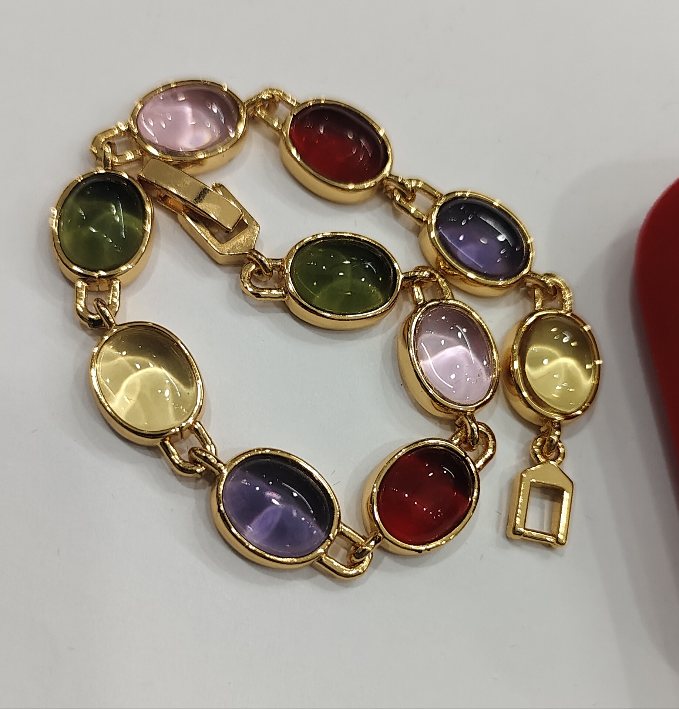 เทขาดทุน+ กำไลข้อมือมณีใต้น้ำยาว 7.นิ้ว งานจิวเวลลี่ชุบทองแท้ |