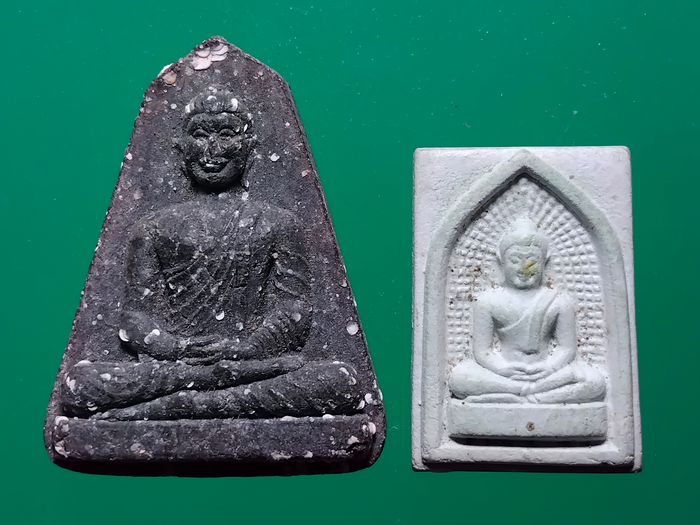 140 .- วัดใจ.@@ เหมา 2 องค์> " พระผงนิลกาฬ หลังยันต์ นะมีเขี้ยว ซึ่งเป็นยันต์หลวงปู่มั่น + พระผงหยก " หลวงพ่อวิริยังค์ วัดธรรมมงคล ค่ะ @@ |