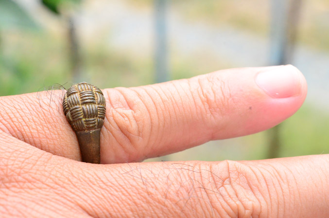แหวนพิรอด สานลายตะกร้อ เนื้อทองเหลือง หลวงพ่อเงินเด่น วัดขุนทิพย์(ศิษย์หลวงพ่อเชื้อ) สืบสานตำนานสายวิชา หลวงปู่โปร่ง(ศิษย์หลวงพ่อกลั่น วัดพระญาติฯ) วัดขุนทิพย์ อ.อุทัย จ.อยุธยา เก่าครับ |