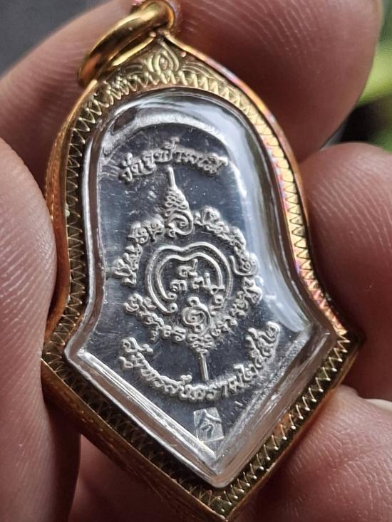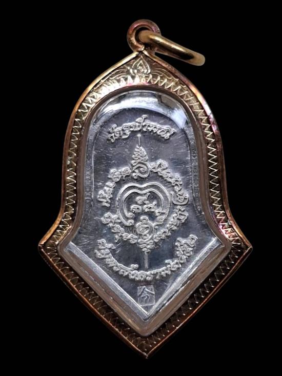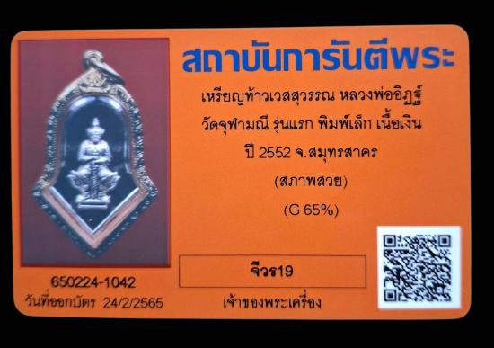 เหรียญท้าวเวสสุวรรณ พิมพ์เล็ก ปี2552 เนื้อเงิน เลี่ยมทอง บัตรสภาพสวย