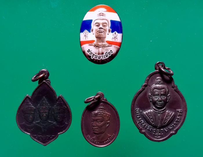 140 .- วัดใจ.@@ เหมา 4 รายการ > ล็อกเก็ตพ่อขุนผาเมือง + เหรียญสามกษัตริย์ สามพระสหายผู้สร้างเวียงนพบุรีศรีนครพิงค์เชียงใหม่ มีพ่อขุนรามคำแหง พ่อขุนเม็งราย พ่อขุนงำเมือง + เหรียญพ่อขุนเจือง ธรรมิกราช จ |