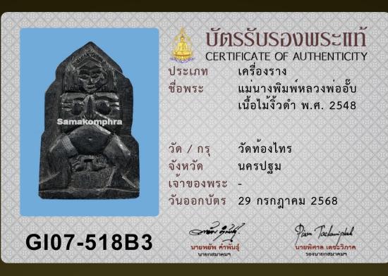 แม่นางพิมพ์ หลวงพ่ออั๊บ วัดท้องไทร ไม้งิ้วดำ ปี 2548 พร้อมบัตรรับรองสมาคม
