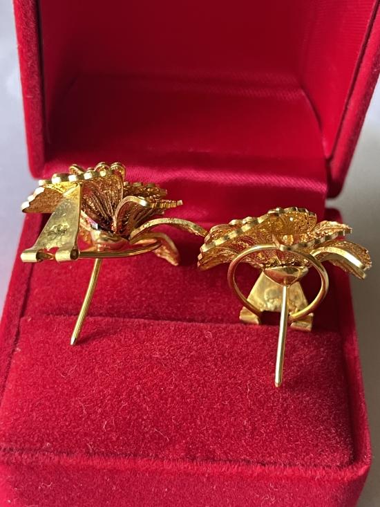 รายละเอียด ต่างหูโบราณเนื้อทองคำ 85% นน. ประมาณ 9.8 กรัม