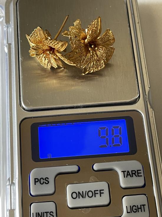 ต่างหูโบราณเนื้อทองคำ 85% นน. ประมาณ 9.8 กรัม