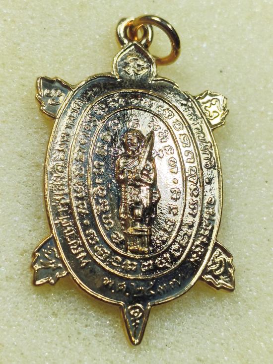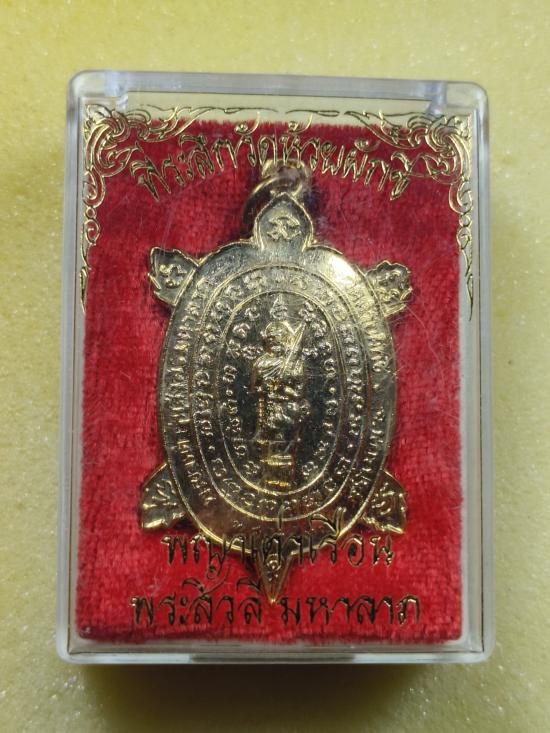พญาเต่าพระสีวลีมหาลาภ หลวงปู่หลิว วัดไร่แตงทอง นครปฐม ออกที่วัดห้วยผักชี ปี2537 เนื้อทองแดงกะไหล่ทอง มีกล่อง แดงเคาะแรก |