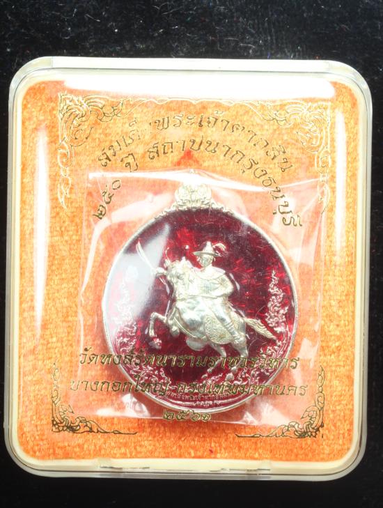 เคาะเดียว พิมพ์เล็ก กะไหล่เงินลงยาแดง เหรียญสมเด็จพระเจ้าตากสินมหาราช 250 ปีสถาปนากรุงธนบุรี วัดหงส์รัตนารามราชวรวิหาร ปี 2561 ตรวจ/แก้ไขแบบ โดย อาจารย์เฉลิมชัย โฆษิตพิพัฒน์ เหรียญสวยน่าเก็บ//No กะไหล่เงินลงยาจิวลี่