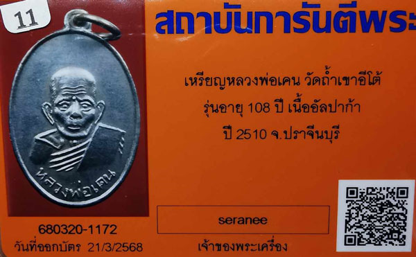 เหรียญหลวงพ่อเคน วัดถ้ำเขาอีโต้ รุ่นอายุ108ปี เนื้ออัลปาก้า ห่วงเดิม ปี2510 จ.ปราจีนบุรี + บัตรG-pra สภาพสวยเดิมค่ะ สภาพตามรูปทุกประการค่ะ