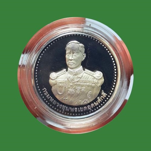เหรียญเพิรธ์หลวงพ่อเงิน หลังกรมหลวงชุมพร วัดบางคลาน เนื้อเงินขัดเงา ปี 2537 สภาพสวย มาพร้อมกล่องเดิมครับ