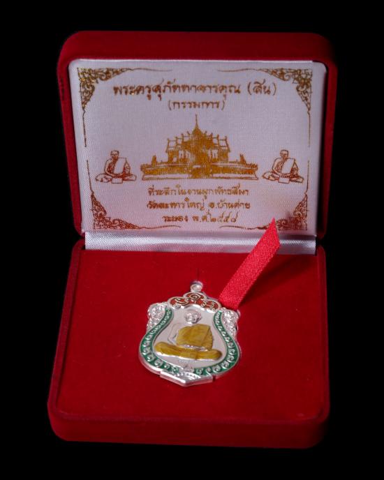 เหรียญเสมาผูกพัทธสีมา ปี 2558 เนื้อเงินลงยา กรรมการ หลวงพ่อสิน วัดละหารใหญ่ จ.ระยอง พร้อมกล่อง แดงเคาะแรก