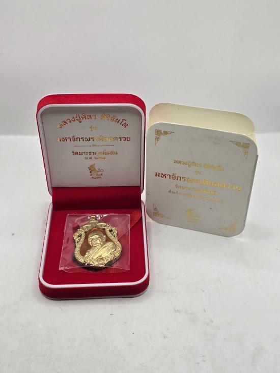 เหรียญ เสมา มหาจักรพรรดิยอดรวย ไหว้ครู๖๘ หลวงปู่มหาศิลา หลวงปู่ศิลา สิริจันโท วัดพระธาตุหมื่นหิน ธรรมอุทยาน จ.กาฬสินธุ์ เนื้อ ปะฉลุทองแดง องค์สัตตะโลหะ ขอบสัตตะโลหะ เลข ๑๐๑๒ มีกล่องเดิม |