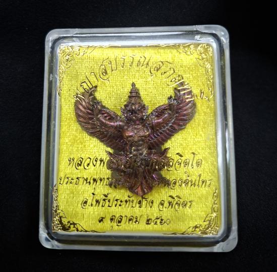 พญาครุฑ สุบรรณสุภฤทธิ์ พ.ศ.2560 หลวงพ่อหวั่น วัดคลองคูณ จ.พิจิตร - เนื้อทองแดงผิวรุ้ง - ยิงเลเซอร์โค้ต และเลขพระ 1224 พร้อมกล่องเดิมครับ |