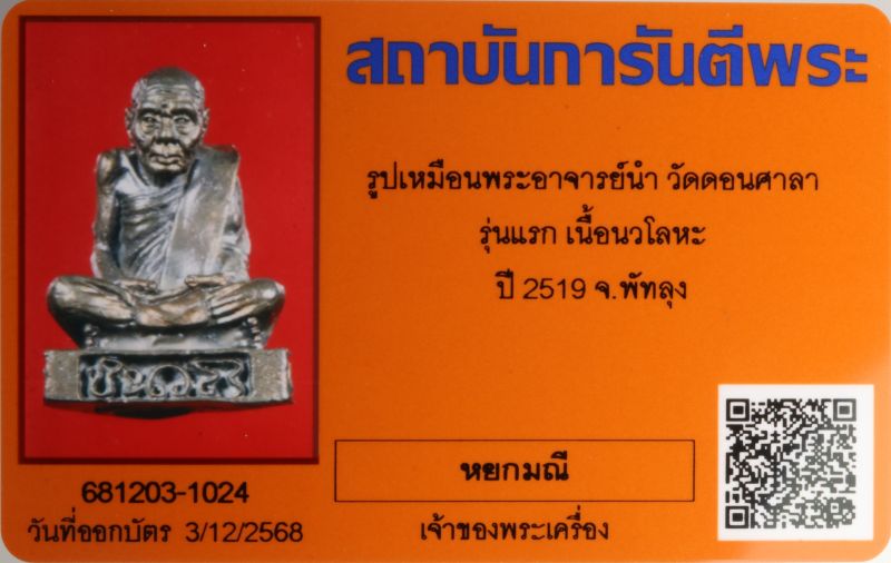 รูปเหมือนพระอาจารย์นำ วัดดอนศาลา รุ่นแรก เนื้อนวโลหะ ปี 2519 จ.พัทลุง