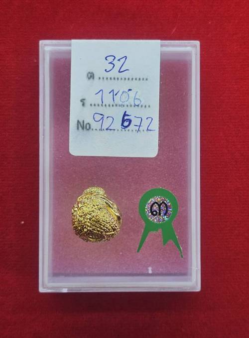 ลูกอมพระสังกัจจายน์ หลวงพ่อพูล วัดไผ่ล้อม เนื้อโลหะชุบทอง ปี2545 ติดรางวัลที่3 งานสมาคมพระเครื่องพระบูชาไทย |