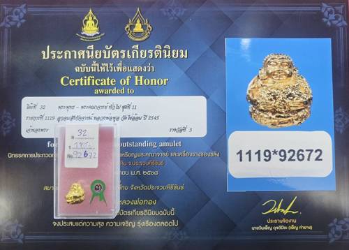 ลูกอมพระสังกัจจายน์ หลวงพ่อพูล วัดไผ่ล้อม เนื้อโลหะชุบทอง ปี2545 ติดรางวัลที่3 |