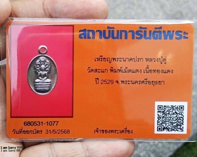 เหรียญพระนาคปรก หลวงปู่ดู่ วัดสะแก พิมพ์เม็ดแตง เนื้อทองแดง ปี 2529 จ.อยุธยา สภาพสวย ผิวแดงเดิมๆ พร้อมบัตรรับรอง + เลี่ยมตลับเงิน |