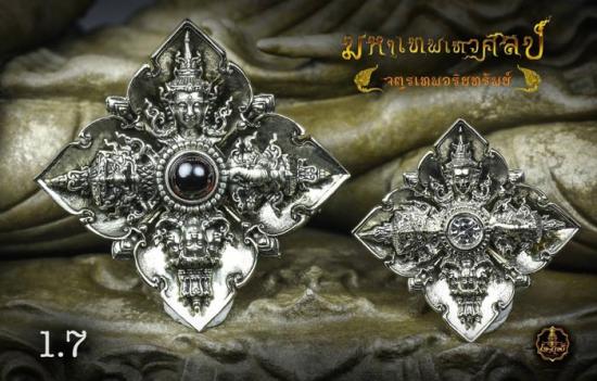 มหาเทพเทวศิลป์ จตุรเทพอริยทรัพย์ พระอาจารย์อรรณพ(อาจารย์เล็ก) วัดถ้ำเขาน้อย จ.เพชรบุรี เนื้อสัมฤทธิ์ชุบซาตินเงิน พิมพ์เล็ก ขนาด 1.5 ซ.ม. กล่องเดิม |