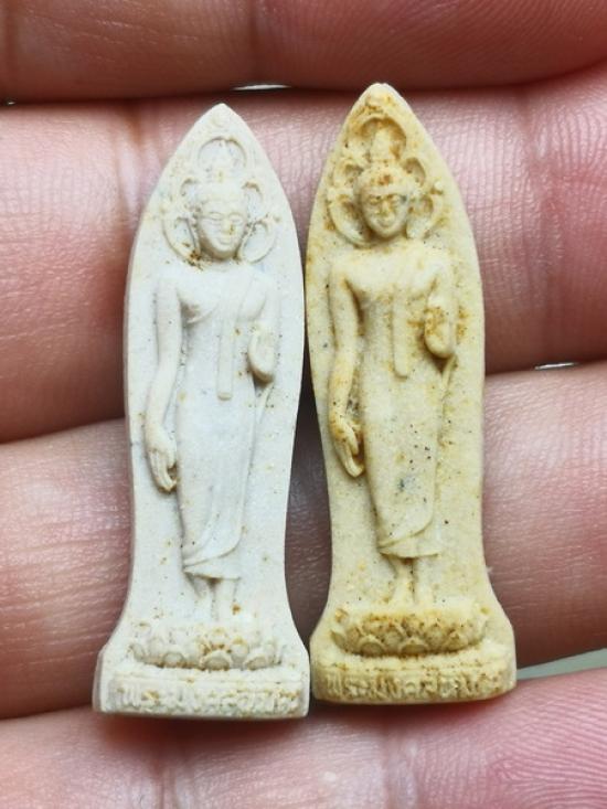 พระลีลามงคลนิมิตรหลังญส. (สมเด็จพระญาณสังวรฯ) เนื้อผง วัดบวรนิเวศวิหาร ปี2529 จ.กรุงเทพฯ มาเป็นคู่ รับพระ2องค์ ตามรูป ราคาเบาๆ |