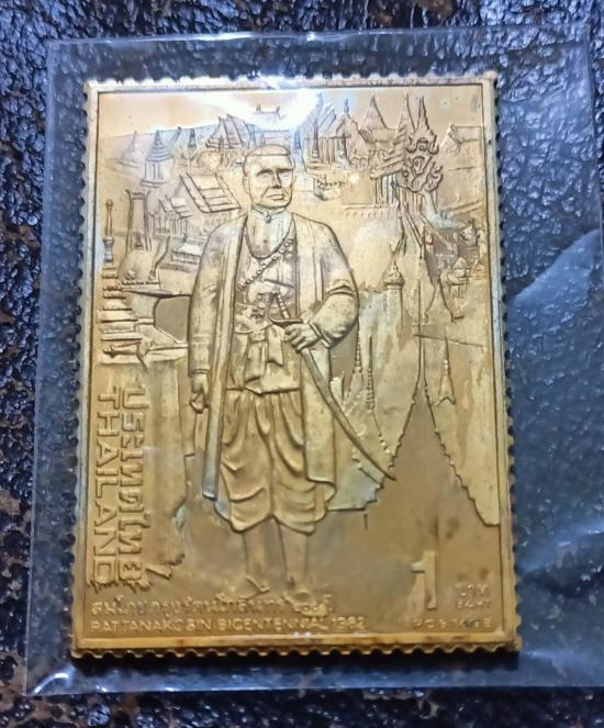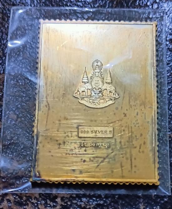 เหรียญแสตมป์ รัชกาล เงินชุบทอง หลังตรากาญจนาภิเษก ขนาด3.5x5เซน