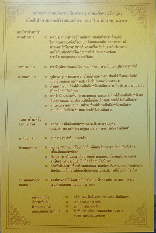 รายละเอียด วัดใจ....ธนบัตรที่ระลึกเฉลิมพระเกียรติพระบาทสมเด็จพระเจ้าอยู่หัวรัชกาลที่9 เนื่องในโอกาสฉลองสิริราชสมบัติครบ 70 ปี 9 มิถุนายน 2559