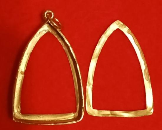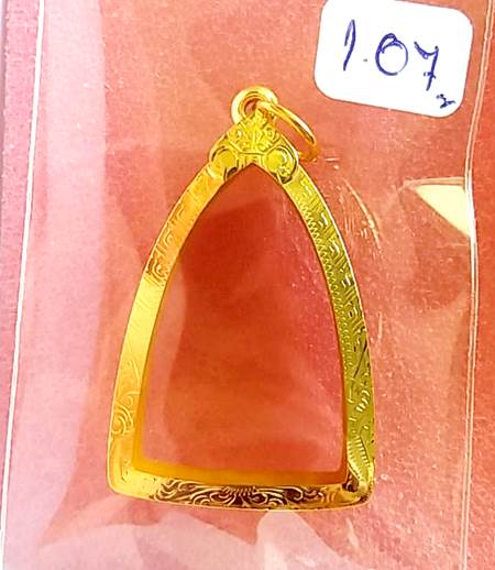 รายละเอียด กรอบทอง80 % เนื้อทองจริงยิงเปอร์เซ็นมาได้ 63-68% หนัก 1.07 กรัม แกะออกจากพระพุทโธน้อย พิมพ์กลาง (คราบที่เห็นเป็นคราบเทียนกรอบพระ) มีตำหนิรอยฉีกเล็กๆตรงมุม