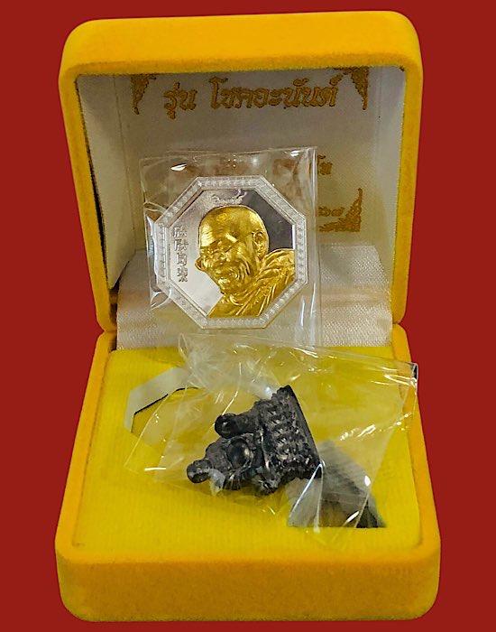 ชื่อพระเครื่อง หลวงปู่มหาศิลา โชคอนันต์ เนื้อเงินหน้าทองคำ ผิวกระจกใสวิ้งๆ จมูก100 เลข540= 9 กล่องเดิมราคาจอง6,999 สวยแชมป์ๆ